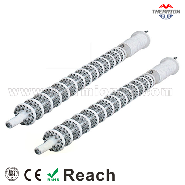 2、帶狀螺旋環(huán)繞電熱輻射管 這種加熱器的結構基本上與第一種結構相同,只是加熱元件采用電阻帶繞制,電阻帶一般厚度為1-3 mm,寬度10-20 mm,管芯也多為多個分組式管芯組成,在同樣表面負荷下,熱輻射面大,材料可節(jié)省,一般大功率點加熱輻射管采用此種形式。